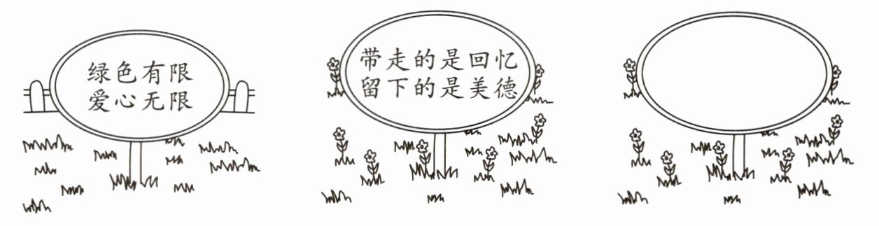 四、欣赏下面草坪上的标语,并请仿写一句爱护花草的标语。