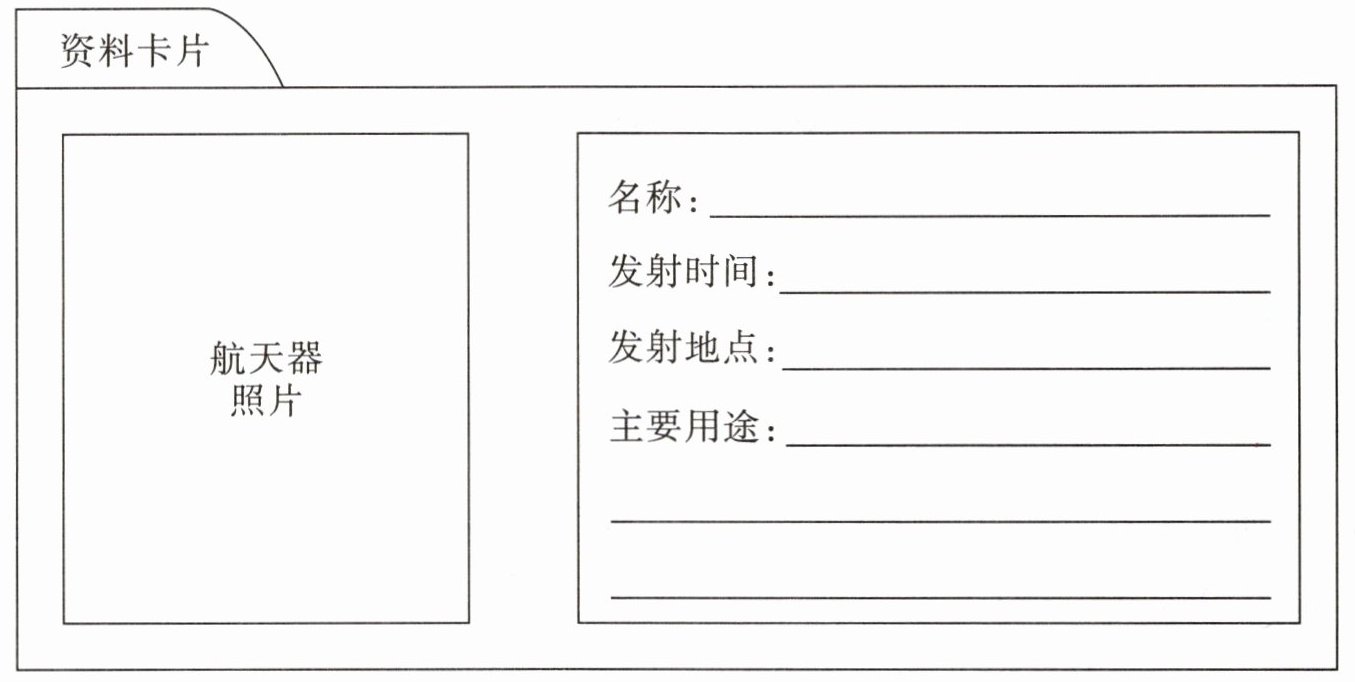 三、你知道下列航天器的用途吗?从中任选一个,并搜集相关资料,完成资料卡片。