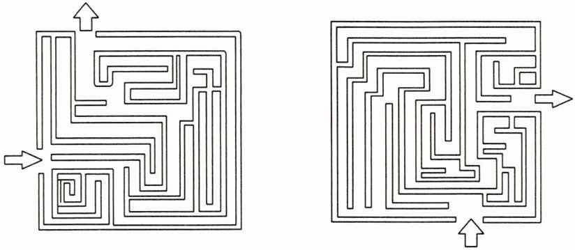 下面是两个迷阵。按照箭头方向,从入口进,出口出,请你试着走走看。