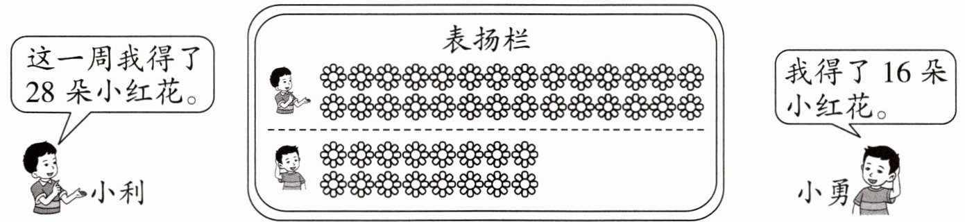 小利给小勇多少朵小红花后,他俩的朵数就一样多?