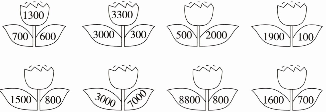 三、把 100、200、300、400、500、600、700、800 这些数,分别填在