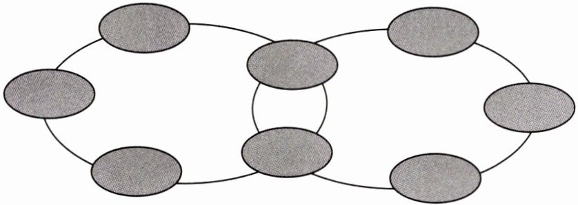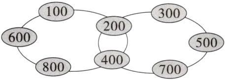 内,使两个大圈上 5 个数的和都是 2100。(每个数只能用一次)