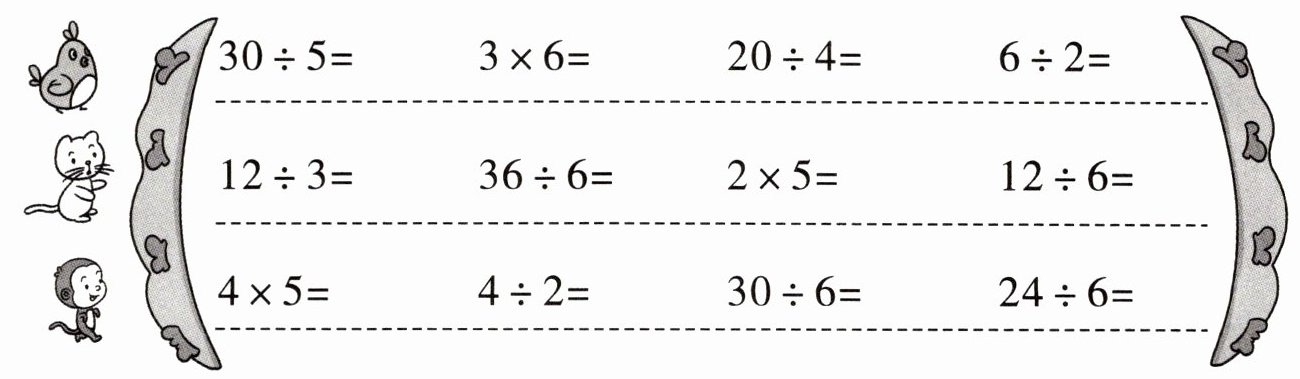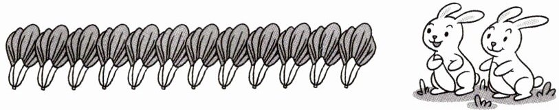 )只小兔,平均每只小兔分几棵青菜?$□ ÷ □ = □$(棵) 想:乘法口诀