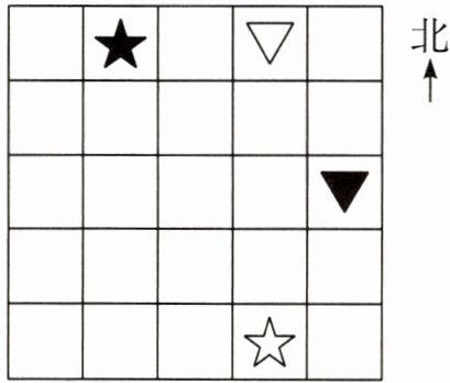 (1)▽先向南跳2格,再向西跳3格,请画出▽移动后的位置。