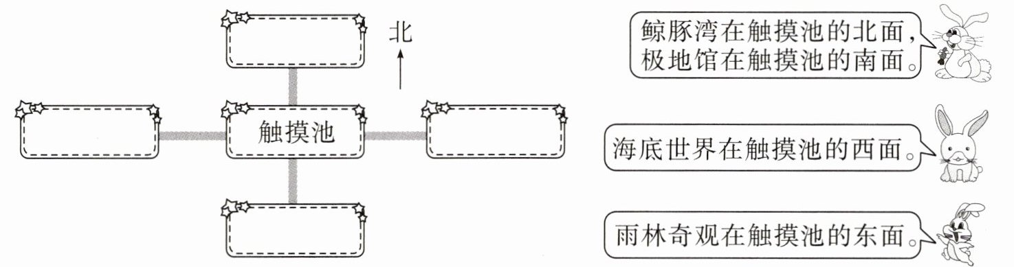 1. 根据小动物们的描述标出海洋公园各场馆的位置。