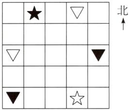 格,再向东跳4格后的位置如图所示。请画出▼移动前的位置。