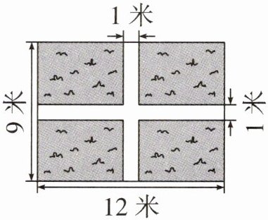 3. 某小区的草坪规划图如图所示,每块草坪的长相等,宽也相等。草坪的总面积是多少平方米?