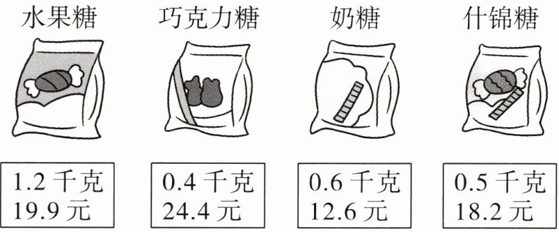 最重。(2)哪袋糖最贵?哪袋糖最便宜?