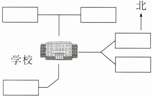 )2. 先向东走,再向东北走,最后向北走到学校。 (