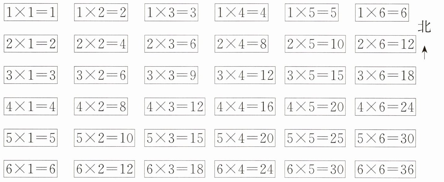 )方向。(3)李老师想要依次取出$\boxed{2×4= 8}$,$\boxed{5×4= 20}$和$\boxed{6×5= 30}$这三张卡片,请你描述出她取卡片的路线。