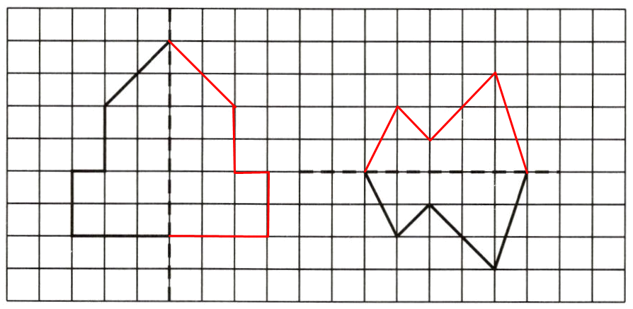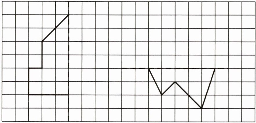 1. 根据对称轴,分别画出下面两个轴对称图形的另一半。