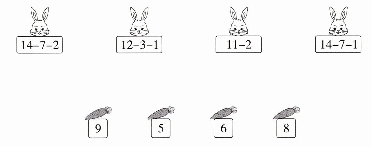答案:$14 - 7 - 2$连$5$;$12 - 3 - 1$连$8$;$11 - 2$连$9$;$14 - 7 - 1$连$6$。