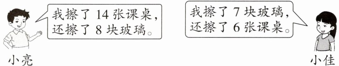 ①小佳再擦几张课桌就和小亮擦的一样多?