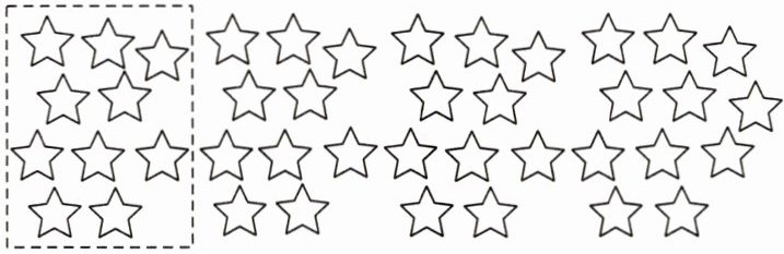 1. 估一估,选一选。上图中大约有多少颗星,在你认为正确的数后面的□里画“√”。