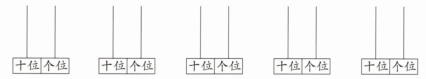 七、在计数器上拨5颗珠子,可以表示出哪些不同的两位数?在下面的计数器上画一画,并在括号里写出这个两位数。