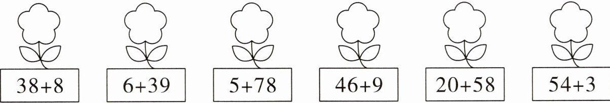 四、把得数大于 56 的花朵涂上你喜欢的颜色。