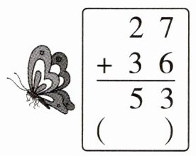 $\begin{array}{r} 27\\ +36\\ \hline 53\end{array} $