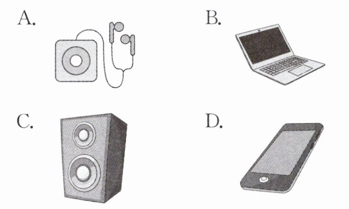 1. 新考法 图片理解 Which of the following may you need if you want to hear the sounds of plants?(