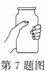 7. (襄阳)如图所示,用手握住重4N的瓶子静止不动,此时瓶子受到摩擦力的方向为