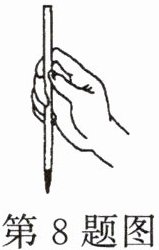 8. 书法是中华民族文化的瑰宝。如图所示,手执毛笔竖直悬空静止,若手握笔杆的力增大,笔受到的摩擦力将
