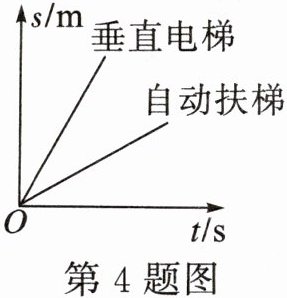 4. 商场里常用到垂直电梯和自动扶梯,如图记录的是小强乘坐电梯的 $ s - t $ 图像。则他搭乘垂直电梯受到的支持力