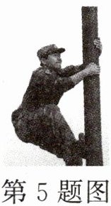 5. 重500N的人正在进行爬杆训练。如图所示,此人紧紧握住杆子并保持静止,他受到的摩擦力大小为