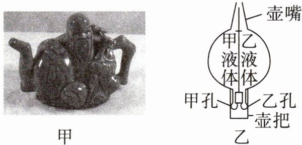6. (十堰)如图甲所示为阴阳壶,壶把上开有两孔,可同时盛装两种液体,如图乙所示为该壶的结构示意图,使用时,若捂住甲孔,则倒出的是
