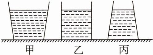 13. (襄阳)如图所示,三个质量相同、底面积相同,但形状不同的容器放在水平桌面上,其内分别装有甲、乙、丙三种液体,它们的液面在同一水平面上,若容器对桌面的压强相等,则三种液体对容器底的压强(