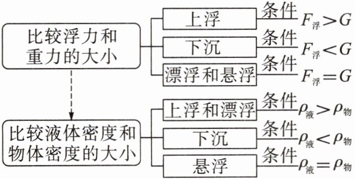 ||密度关系|$\rho_{液}= \rho_{物}$|$\rho_{液}>\rho_{物}$|