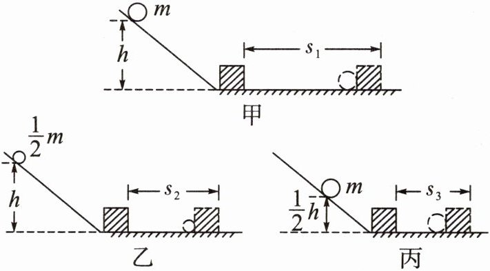 有关。【进行实验】他们做了如图所示的三次实验:用金属球模拟汽车,让金属球从斜槽的某一高度由静止开始滚下,碰到水平面上的物块,将物块撞出一段距离。物块被撞击得越远,说明金属球到达水平面时的动能就越