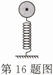 16. (遂宁)质地均匀的小球从弹簧正上方竖直下落,压缩弹簧减速下降,请作出此时小球所受重力$ G 和弹力 F $的示意图。