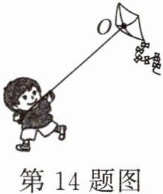 14. (河南)放风筝是我国的一项民俗。如图所示为小亮放风筝时的情景,请画出风筝所受重力及风筝线对手中线轴拉力的示意图。($ O $点为风筝的重心)