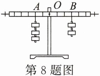 8. (泰州)如图所示,在均匀杠杆的A处挂3个钩码,B处挂2个钩码,杠杆恰好在水平位置平衡。下列操作中,仍能使杠杆在水平位置平衡的是(所用钩码均相同) (