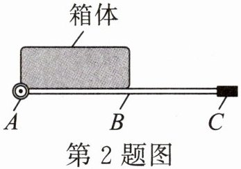 2. (益阳)如图所示,装满物品的拉杆式旅行箱总重为60N,其重心在箱体的几何中心,图中AB与BC等长。现将平放在水平地面上的该旅行箱的C端抬离地面,至少用力