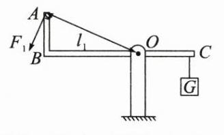 9. (常州)请在图中画出使杠杆ABC保持平衡的最小动力$F_{1}及其力臂l_{1}$的示意图。