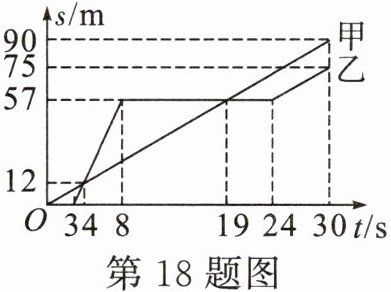 16.(毕节)甲、乙两辆小车同时从同一地点出发,其s-t图像如图所示。由图像可知:0~5 s内,甲、乙两车做匀速直线运动,乙车速度为