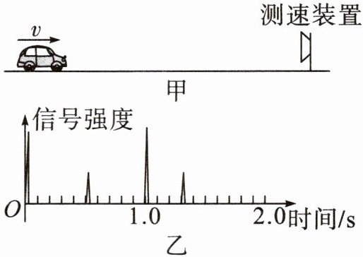 21.如图甲所示,在高速公路上一辆轿车做匀速直线运动,在其正前方有一固定的超声波测速装置。该装置每隔1 s发射一束超声波脉冲信号,每个脉冲信号持续时间极短,超声波遇到轿车后立即返回,返回信号被超声波测速装置接收,经过计算机处理自动计算出车速。如图乙所示为该测速装置连续发射和接收两次信号的波形图。已知发射第二个脉冲信号时第一个脉冲信号已被接收,超声波在空气中的传播速度为340 m/s,根据图像获得的信息计算: