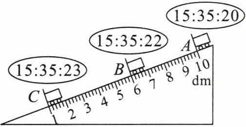 $20.($丹东$)$小明在$“$测量小车的平均速度$”$实验中$,$使小车从带刻度尺的斜面上由静止下滑$,$如图所示。