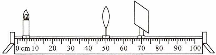 20.(重庆)在“探究凸透镜成像规律”的实验中,当光屏上有清晰的烛焰像时,蜡烛、透镜,光屏位置如图所示,则光屏上的像应为倒立、