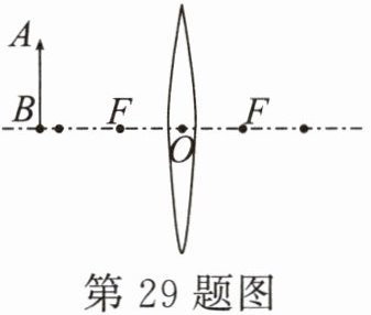 29.(无锡)如图所示,图中物体AB在凸透镜两倍焦距以外,请画出AB经凸透镜所成像$A'B'$的大致位置。