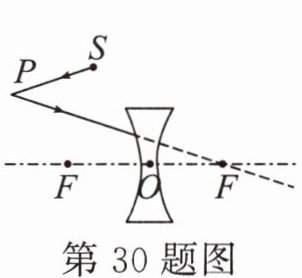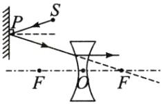 30.(眉山)如图所示,从点光源S射出的一条光线经P处的平面镜反射后,反射光线射向凹透镜的焦点方向。