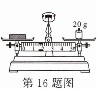 16.(广安)学习了密度知识后,小华同学想知道橡皮擦的密度。他用调节好的托盘天平测橡皮擦的质量,天平平衡时右盘砝码和游码位置如图所示,再用量筒测出橡皮擦的体积为$10cm^{3}$,则该橡皮擦的密度为