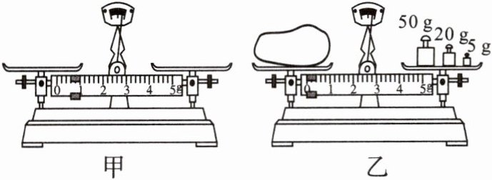 (2)调节天平横梁平衡后,将物体放在左盘中,用镊子由大到小在右盘中加减砝码……当放入5 g的砝码时,指针偏向分度盘的右侧,如图乙所示。则接下来的操作是______,直到横梁恢复平衡。