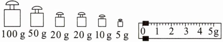 13.实验室用的托盘天平,砝码盒中常配备的砝码规格有100 g、50 g、20 g、10 g、5 g。现要测量一物体的质量(约为70 g)。