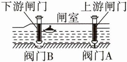 (选填“左大右小”“左小右大”或“左右相等”),阀门B关闭阀门A打开时,闸室与上游水道