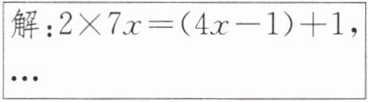 (1)如下:解:$2×7x=(4x-1)+1$,…