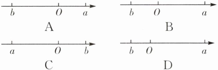 11. (2025·上海松江区期末)已知 $a$,$b$ 是有理数,$|a| = -a$,$|b| = b$,且 $|a| > |b| > 0$,用数轴上的点来表示 $a$,$b$,正确的是( )。