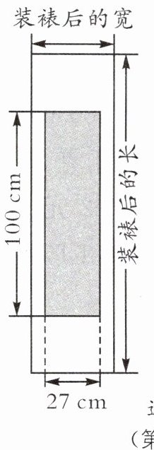 8.(重庆八中自主招生)对联是中华传统文化的瑰宝,对联装裱后,如图所示,上、下空白处分别称为天头和地头,左、右空白处统称为边.一般情况下,天头长与地头长的比是6:4,左、右边的宽相等,均为天头长与地头长的和的$\frac {1}{10}$.某人要装裱一副对联,对联的长为100cm,宽为27cm.若要求装裱后的长是装裱后的宽的4倍,求边的宽和天头长.