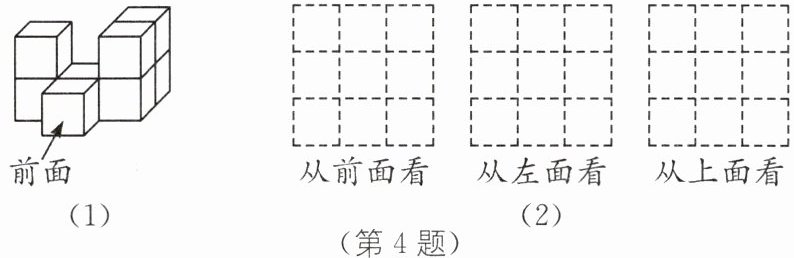 4. (2024·陕西西安期末)从前面、左面、上面三个方向看该立体图形,分别画出看到的平面图形.