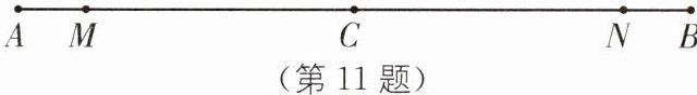 11. 动点模型 如图,点C,M,N在线段AB上.已知$ AC:BC = 3:2 $,当$ AM = \frac{1}{4}CM $,$ BN = \frac{1}{4}CN $时,$ MN = 12 $.
